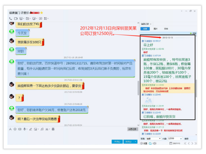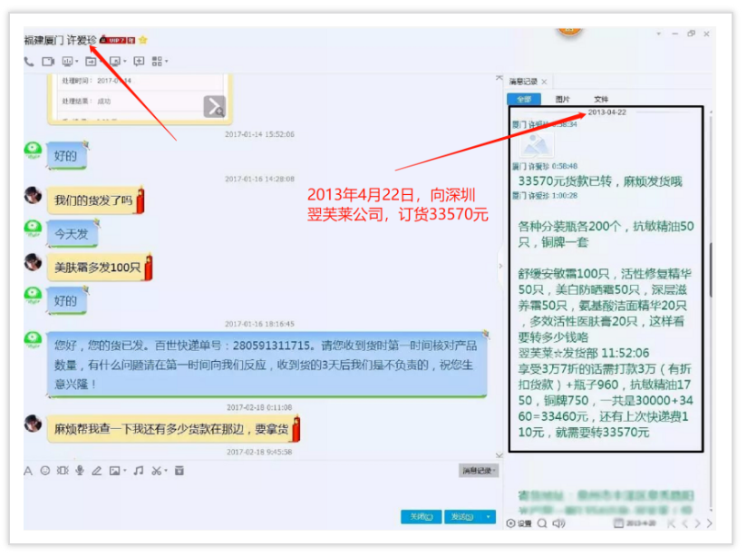 從2011年--2017年間多次向深圳翌芙萊化妝品有限公司進(jìn)貨,后期自己注冊(cè)翌芙萊(廈門)生物科技有限公司,還搶注翌芙萊商標(biāo),打著翌芙萊品牌大肆招搖撞騙,有圖為證。