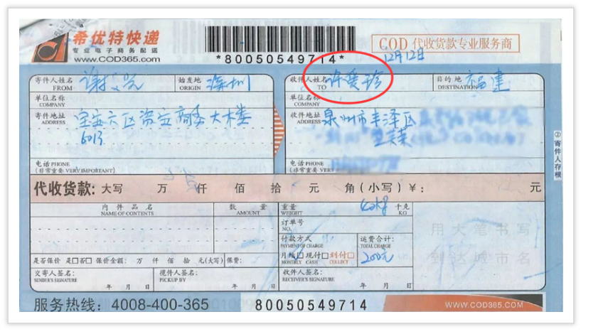 許愛珍快遞發(fā)貨單記錄